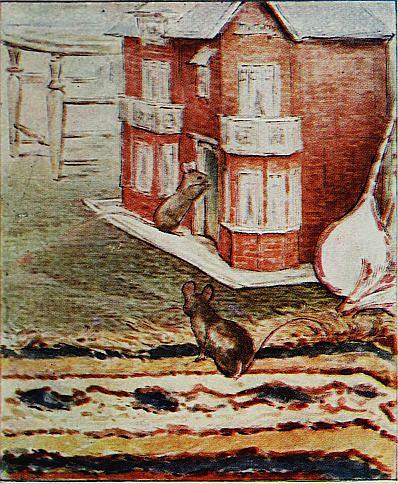 The doll's-house stood at the other side of the fire-place. Tom Thumb and Hunca Munca went cautiously across the hearthrug. They pushed the front door—it was not fast.